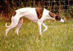1 Smith's Pure Heart wh/r with a lovely head and eye, good neck and shoulder and through body, not built on such different lines to our show dogs, moved well.